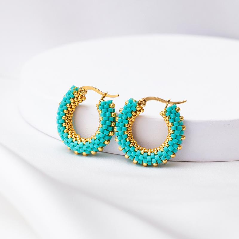 Эти бирюзовые серьги изготовлены из высококачественного японского бисера и имеют застежку из нержавеющей стали. Она не тускнеет и не вызывает аллергии. Они подойдут для ваших повседневных и вечерних образов. Купите эти серьги ручной работы на подарок маме, сестре или подруге. Серьги упакованы в красивую подарочную коробочку. Вам не придется беспокоиться об упаковке. ♦ Детали ♦ - Диаметр - 23 мм - Японский бисер - Застежка из нержавеющей стали - Подарочная упаковка Готовы к отправке. Вы всегда можете задать мне вопросы в сообщениях. Приятных покупок! ♥