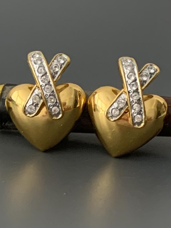 ✨💛✨Глянцевые клипсы сердца с кристаллами в позолоте. ✨💛✨ Объемные.🫶 Размер 3,0*2,0см. Общее состояние очень красиво.💫 Цена 1600грн.✨