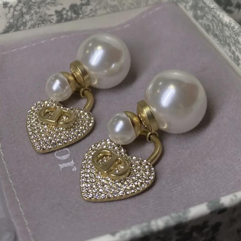 Сережки-сердечки диор с жемчугом и россыпью циркония, позолота 18 к