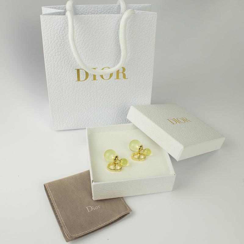 Диор серьги две желтые бусинки в подарочной брендовой упаковке / диор серьги шарики