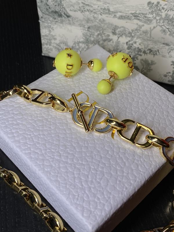 Подвеска цепь диор позолота 18 к и сережки диор ярко желтые (можно по отдельности)