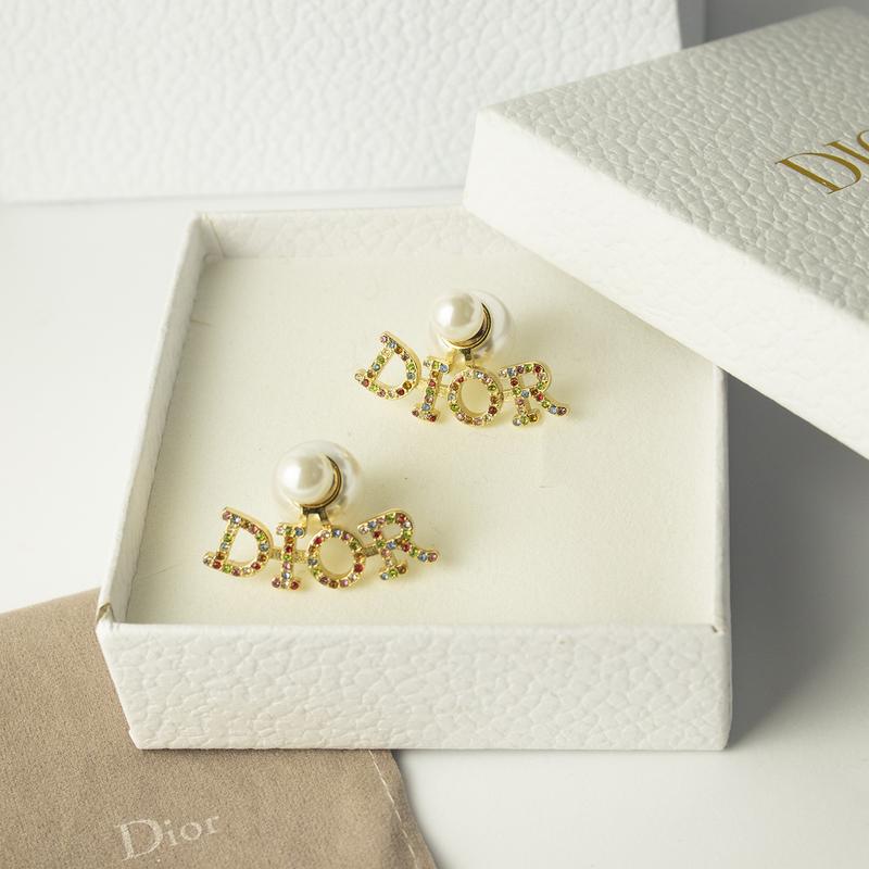 Диор серьги две жемчужины с цветным цирконием / подарочная упаковка