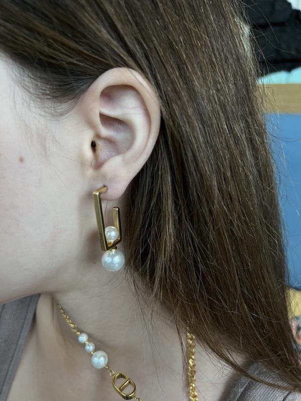 Диор серьги прямоугольные (трансформеры) с жемчугом (можно носить как две жемчужинки)
