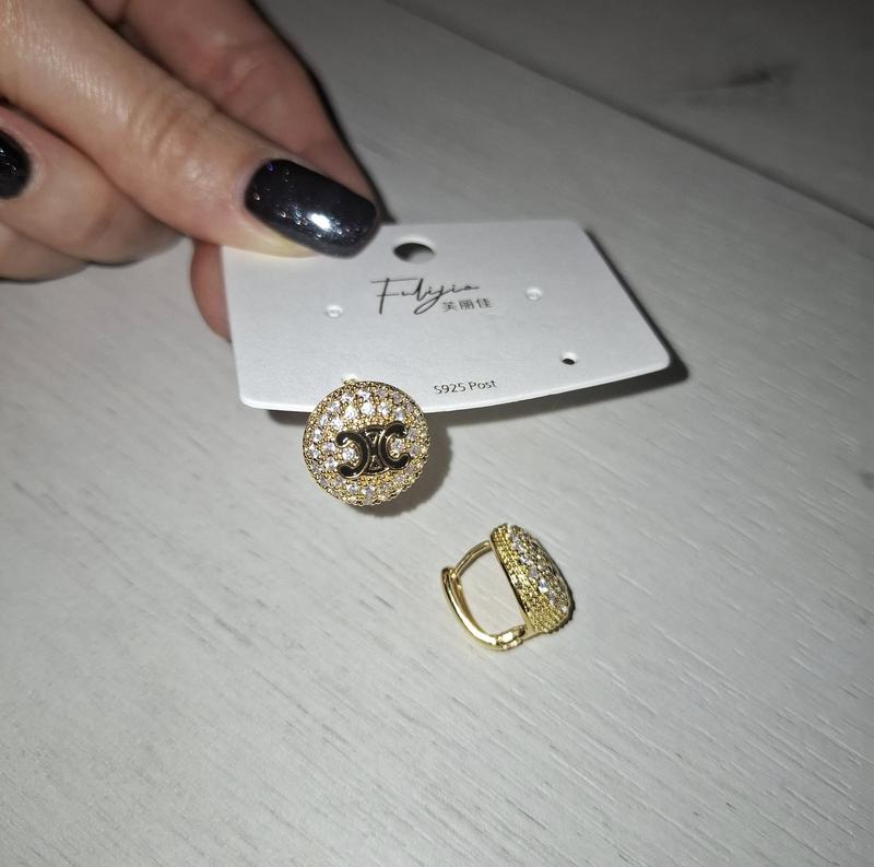 Красивые, трендовые, брендированные серьги в стиле Celine. Люкс качество, удобные. Красиво блестят, надежная застежка.