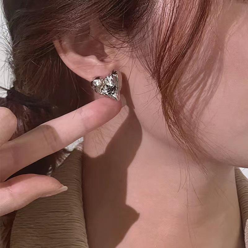 Серьги сердце сердечко текстурные мяты неправильной формы в стиле олд мани размер 1,5 см