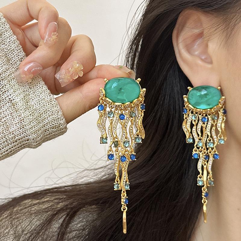 Люксовые серьги медуза в стиле гуччи, море, вставка как плазма, подвески, кисточки