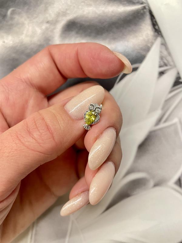 Серебряная совушка Серебряная серьга с желтым цирконом и мелкими фианитами К желаемому шагу -