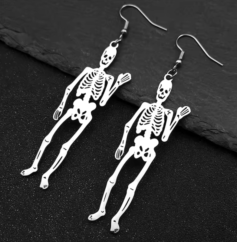 Серьги длинные скелеты, скелет, череп, черепа, готические, готика. медсталь