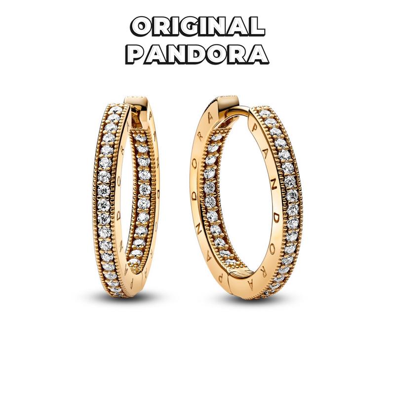 Пандора оригинал из сша 262738c01 с логотипом и паве серьги круг кольца с камнями позолота...