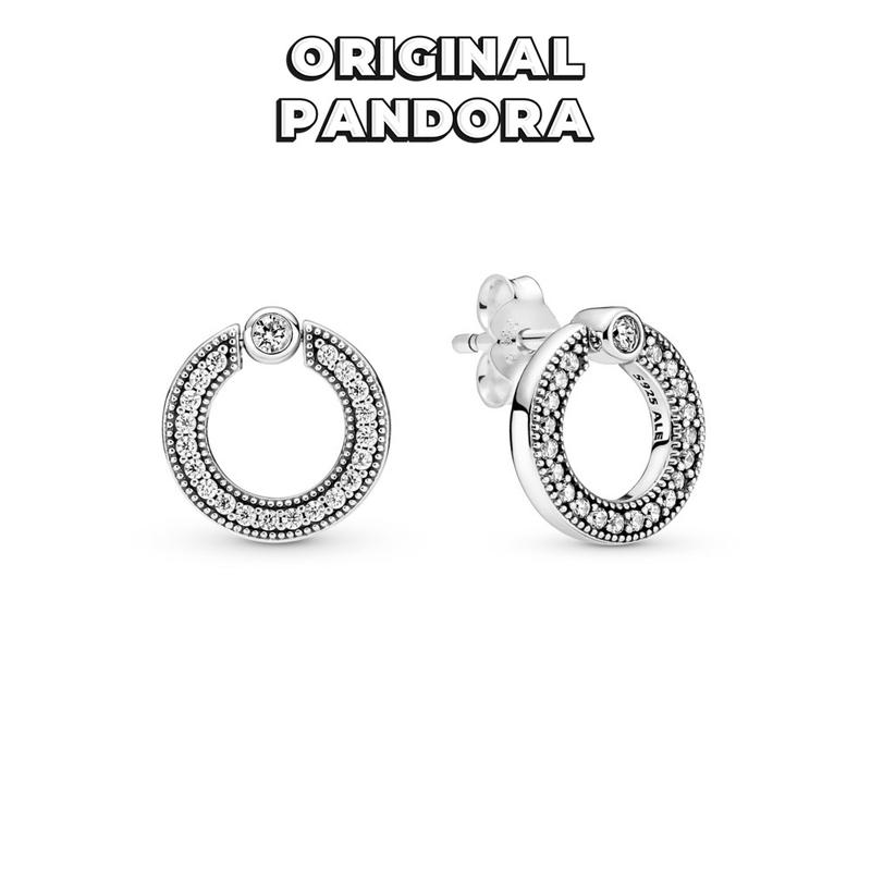 Пандора оригинал из сша 299486c01 кольца с паве и логотипом серьги с камнями серебро s925...