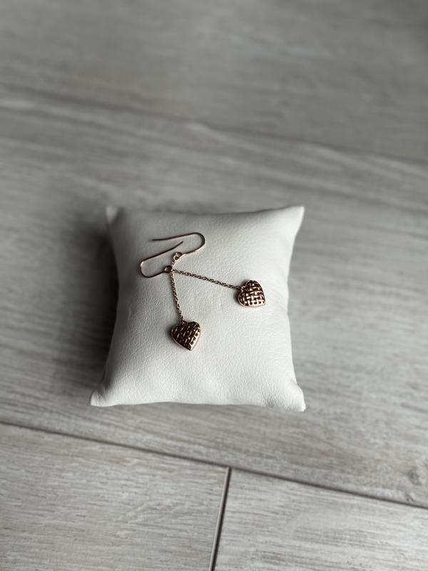 Серьги-сердечки с розовым золотом из стерлингового серебра Высота серьги - 4см.