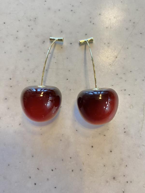 Крупные серьги вишенки. Длина 5,8 см, диаметр 2.2 см. Материал смола, похоже на камень