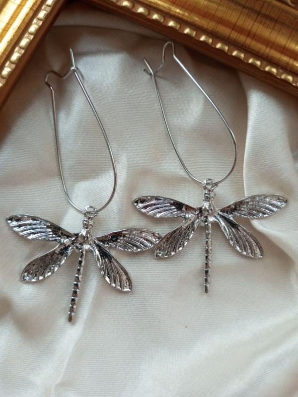 материал -сплав цвет серебро 💫 легкие.не отягощают ушко. длина 6 см. одеваются с внутренней стороны уха, застежка - петля полностью протягивается в ушко, а затем одевается на нее подвеска в виде насекомые, стрекозы. креативное и стильное украшение для дополнения образа 😍 больше украшений на странице 😊