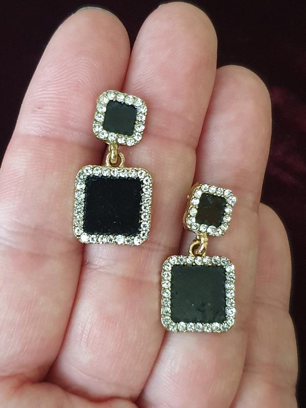 Винтажные пусеты а золотом цвете с черными вставками в обрамлении сверкающих кристаллов. Американский винтаж. Состояние очень хорошее. Замеры на фото. Все фотографии актуальны. Вы получаете товар указанный в объявлении и на фотографиях.