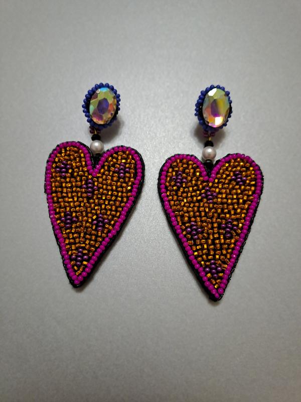 Серьги из бисера ручная работа , обратная сторона выполнена из кожи , застёжка гвоздик
