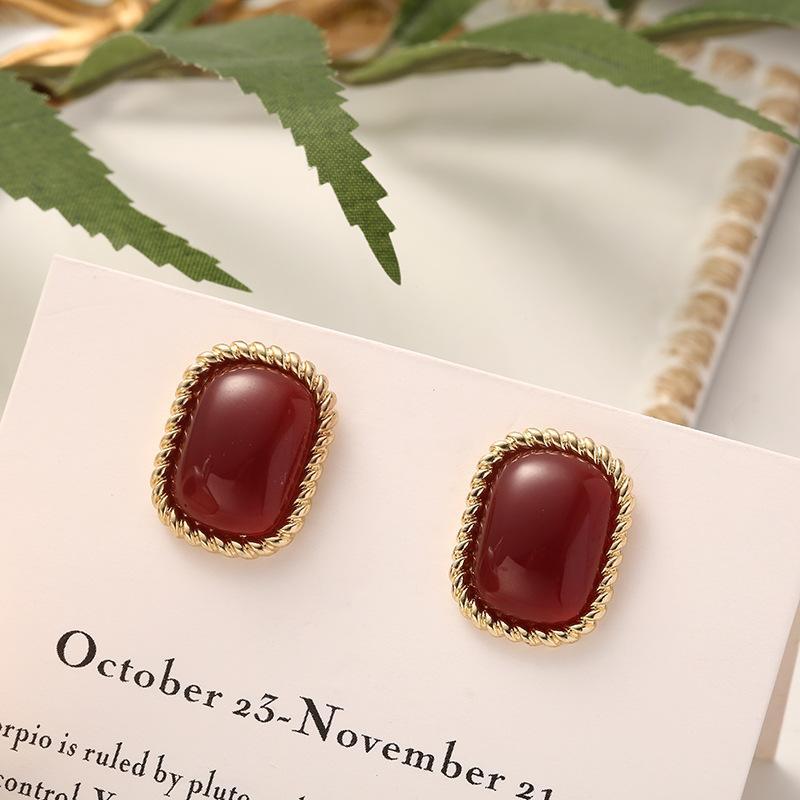 Лаконические, бордовые серьги с золотым украшением. Выглядят элегантно и стильно! Размер: 2 см Застежка: гвоздик Состав: акрил+бижутерный сплав