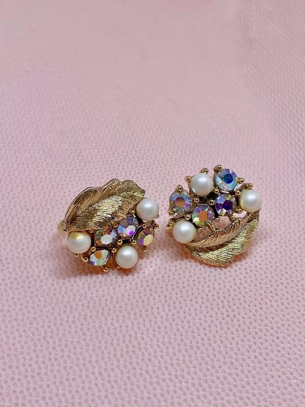 Изысканные серьги-клипсы с жемчужинками и блестками 1950-1960х годов⚜️ 🔸Диаметр: 2см 🔸Маркировка: Lisnes 🔸состояние хорошее, есть незначительные следы времени и клея