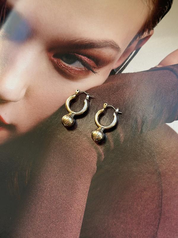 Елегантні сережки Mango (біжутерія) Стануть незамінним доповненням до Вашого образу Одна сторона виконана у білому металі, інша - у жовтому Стан: ідеальний Розмір: 2,5 см