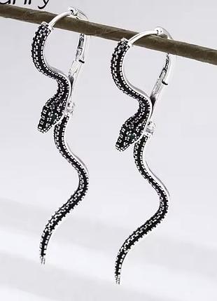 серьги в виде змейка, нижняя часть подвижная, серебро