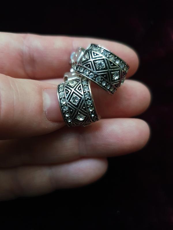 Изысканные винтажные клипсы с изящным геометрическим узором из бороздок, заполненных черной эмалью и белых сверкающих кристаллов. Американский винтаж 60-х годов ХХ века. Состояние очень хорошее. Замеры на фото. Все фотографии актуальны. Вы получаете товар указанный в объявлении и на фотографиях.