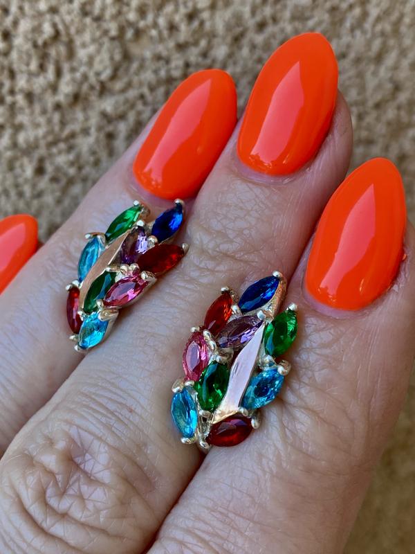 Нові акцентнi cрiбнi сережки для створення яскравого лiтнього образу. Вставки - золотi пластини та рiзнокольоровi фiанiти огранки маркiз. Срiбло 925 проби вкрите родiєм 999 проби. Сережки легкі, зручні будуть на кожен день. Надiйна англiйська застiбка. Можна брати на подарунок. Ще маю багато цікавих прикрас. Фотографії знято на звичайний телефон, без спалаху та сторонніх програм. Всі мої речі та аксесуари якісні, покупкою залишитесь задоволені) За потреби надам додаткові фото та з радістю відповім на Ваші запитання) Ексклюзив. Срібло. Золото. Натуральне каміння. Натуральний камінь. Сережки. Сережки з підвісками. Родоване. Кульчики. Вісюльки. Каблучка, кольцо. Браслет. 925 проба, 585 проба. Біле золото. Діамант. Розовий кварц. Мистик топаз. Каучук. Длинные серьги. Брилиант. Золото. Конго