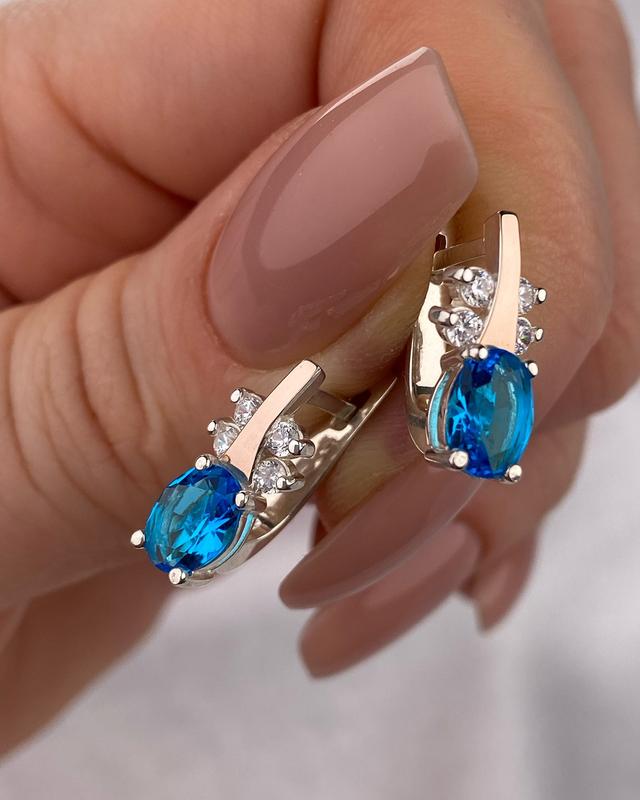 ⚖️Средний вес-4,57 гр 💎Серебро 925 проба 💎Золотые пластины 375 пробы 💎Вставки куб.цирконий 💎Английская застежка 💎Длина-1.8 см