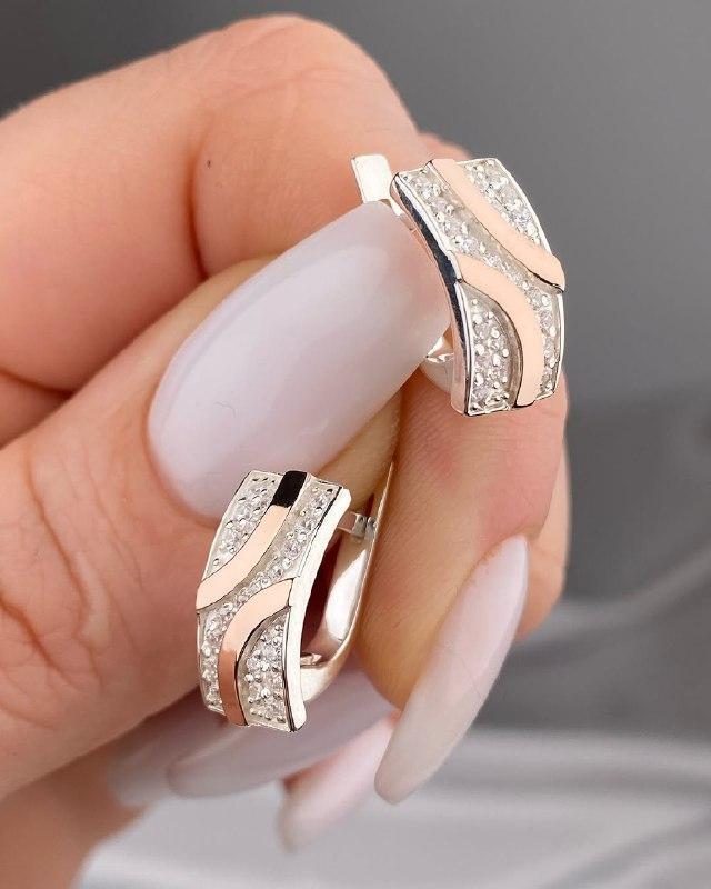 ⚖️Средний вес-4,9 гр 💎Серебро 925 пробы 💎Золотые пластины 375 пробы 💎Вставки куб.цирконий 💎Длина-1.6 см 💎Английской застежкой