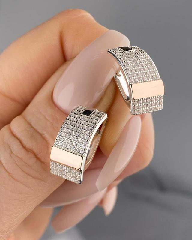 ⚖️Средний вес-5,35 гр 💎Серебро 925 пробы 💎Золотые пластины 375 пробы 💎Вставки куб.цирконии 💎Длина-1,9 см 💎Английская застежка