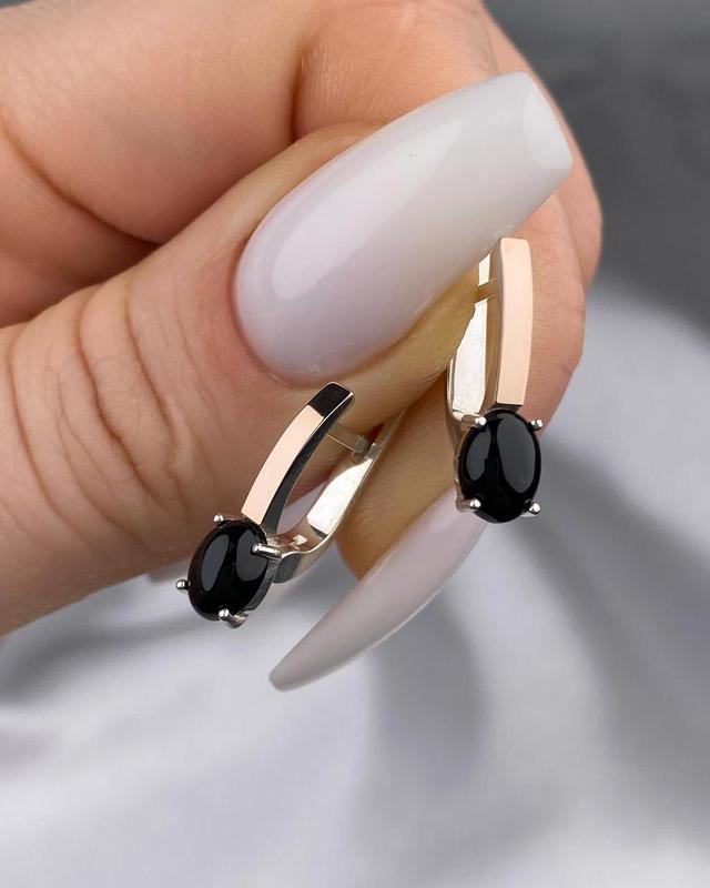 ⚖️Средний вес-3,45 гр 💎Серебро 925 пробы 💎Золотые пластины 375 пробы 💎Вставки им.оникс 💎Английская застежка 💎Длина-1,9 см