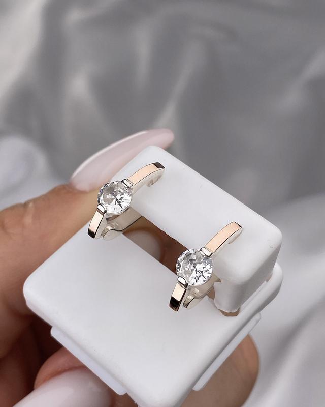 ⚖️Средний вес-3.82 гр 💎Серебро 925 пробы 💎Золотые пластины 375 пробы 💎Вставки куб.цирконий 💎Длина-1,8 см 💎Английская застежка