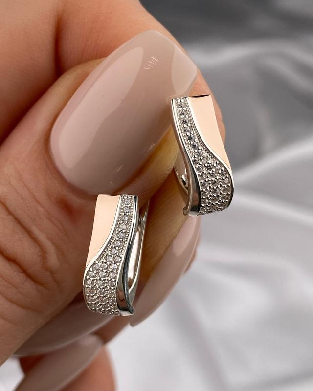 ⚖️Средний вес-3.52 гр 💎Серебро 925 пробы 💎Золотые пластины 375 пробы 💎Вставки куб.цирконий 💎Английская застежка 💎Длина-1,6 см