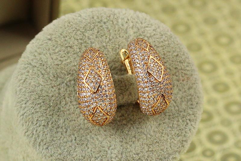 Серьги Xuping Jewelry Сиэтл с ромбами золотистые длина 2,2 см ширина 1,1 см застежка английская