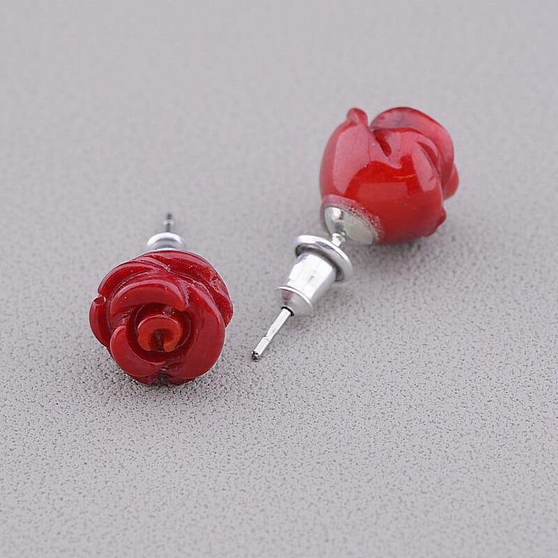 Размер серьги: 12х12 мм. Тип замочка: Пусет Материал: Сталь Камень: Коралл(нат.) Цвет: Красный Цвет3: Серебряный Вес: 2,92 г.
