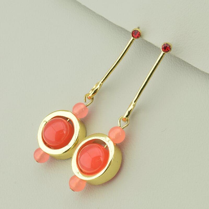 Размер серьги: 60х18 мм. Тип замочка: Пусет Материал: Бижутерный сплав Камень: Кварц(нат.) Цвет: Оранжевый Цвет2: Розовый Цвет3: Золотой Вес: 24,97 г. Комментарий: Товар партнеров (скидка меньше в 2 раза)