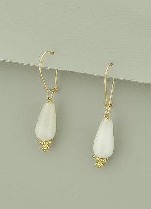 Розмір сережки: 50х10 мм. Тип замочка: Французький Матеріал: Біжутерний сплав Камінь: Кварц (нат.) Колір: Білий Колір3: Золотий Вага: 10 г. маль: Товар партнерів (скідка менш ніж удвічі)