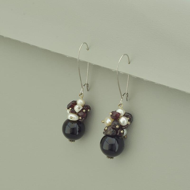 Размер серьги: 65х15 мм. Тип замочка: Петля Материал: Медный сплав Качество: Хорошее Камень: Агат(нат.) Камень2: Гранат(нат.) Камень3: Жемчуг(нат.) Цвет: Черный Цвет2: Бордовый Цвет3: Белый Вес: 17,5 г.
