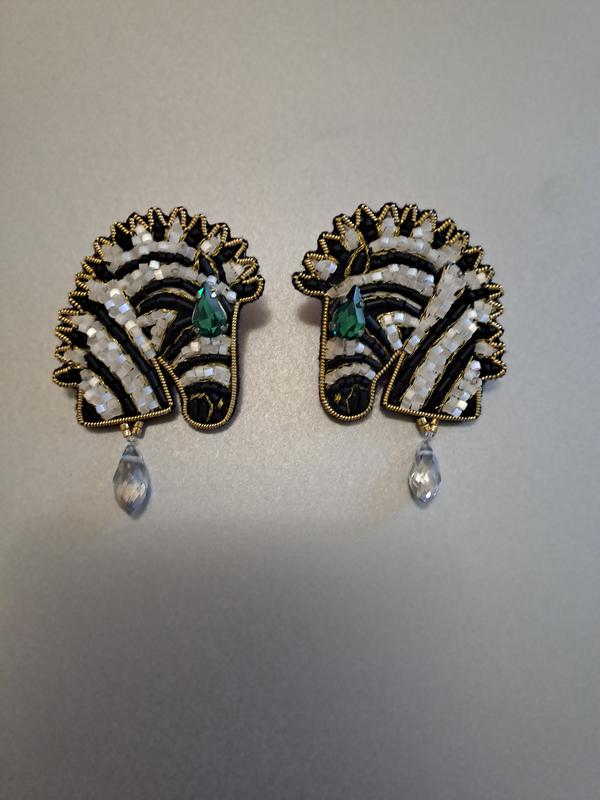 Серьги зебра из бисера ручная работа , застёжка гвоздик , обратная сторона выполнена из кожи , смотрятся стильно и неотразимо
