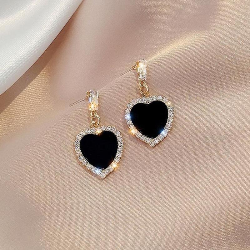Модные черные хрустальные серьги с геометрическим сердцем для девочек 😍❤️