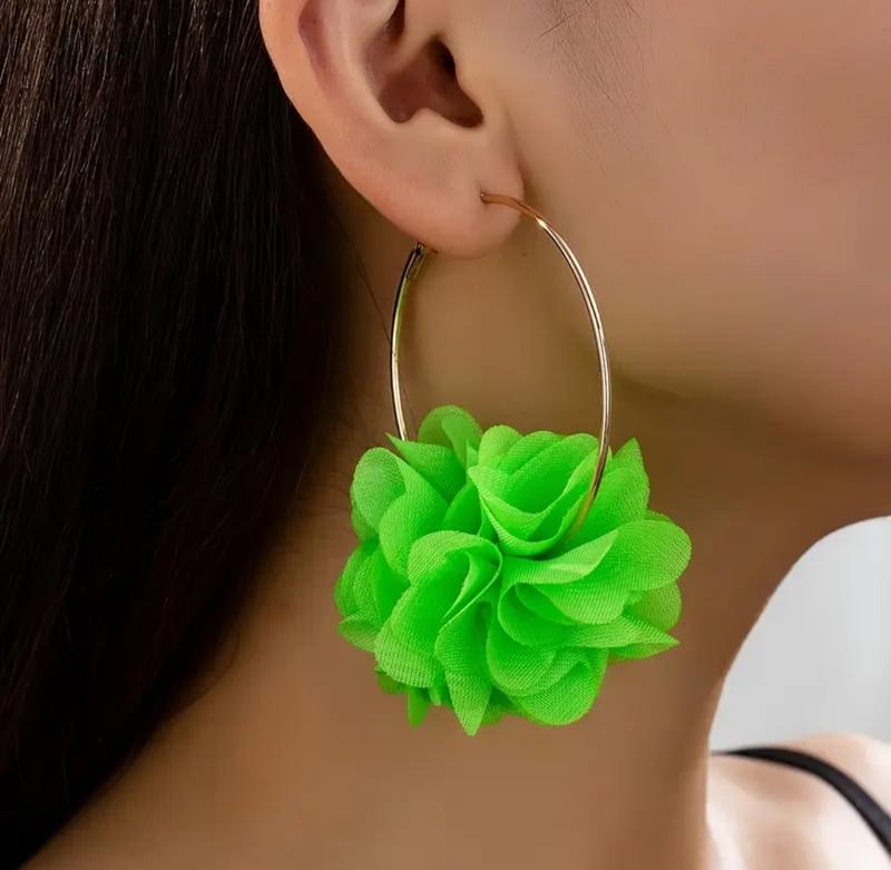 Пара Модных сережек Серег-Колец С Цветочны м Мотивом, Идеально Подходящих Для Женщин, К оторые Можно Носить В Отпуске, На Вечеринках И Общественных Мероприятиях Элегантные салатовые Серьги-Хупы с Цветком из Нейлона для Женщин, Покрытие 14К Золотом, Легкие и Удобные, Идеально для Вечеринок и Повседневной Одежды, Необычные Серьги