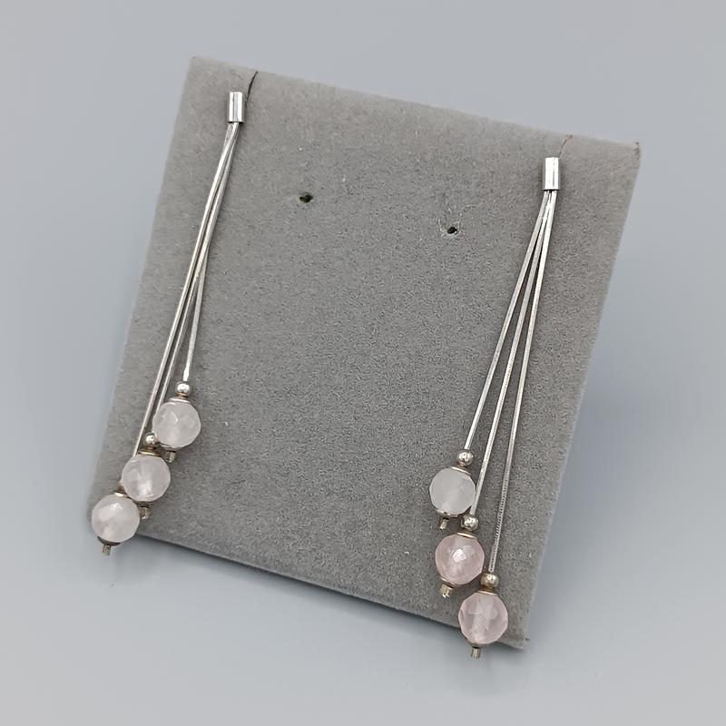 Изящные серебряные серьги с розовым кварцем – 925 проба made in italy ювелир leader prezio...