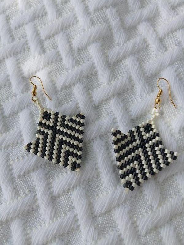 Стильные, эффектные черно-белые серьги из качественного японского бисера MIYUKI DELICA. Шикарно сверкают при дневном свете Возможен повтор в другой цветовой гамме✨ Довжина сережок 5 см, ширина - 4 см.
