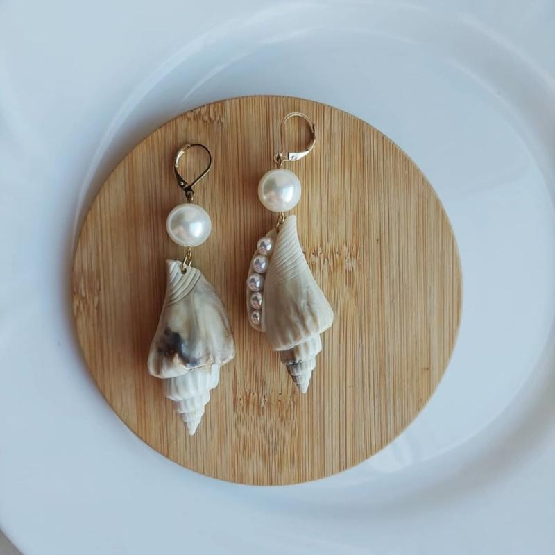 Серьги в форме ракушек с жемчужинками