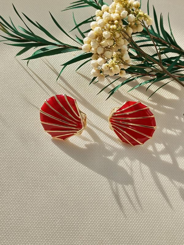 ❤️ Милые винтажные клипсы в форме ракушек. Идеальное состояние, сочная красная эмаль 🔥 Размер 1,9 см * 1,8 см