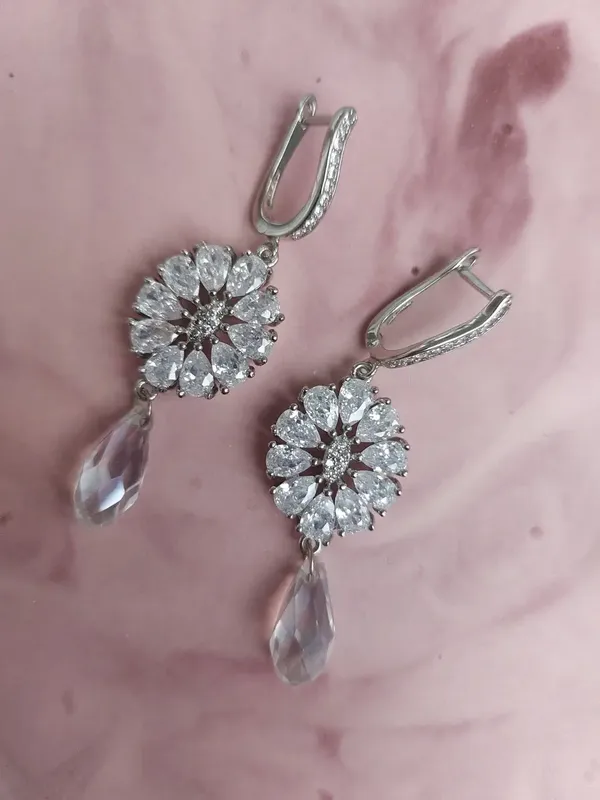 Роскошные длинные серьги подвески с прозрачными фианитами и хрусталем медицинский сплав