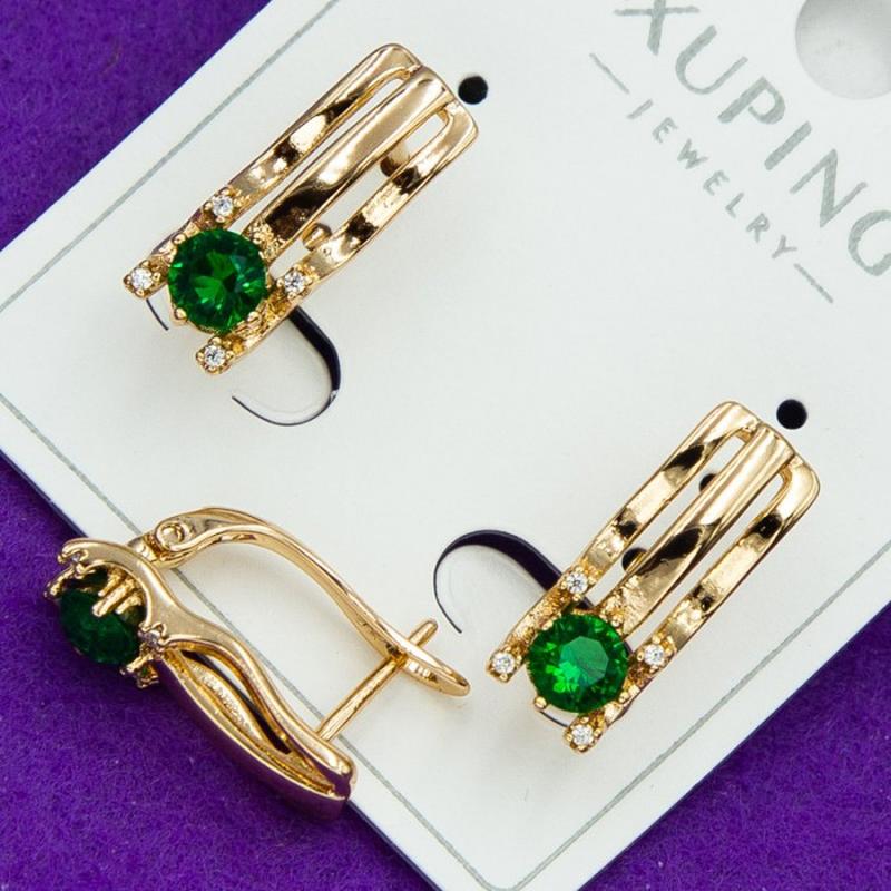 Сережки xuping №2409 з зеленим цирконом кюпінг ювелірна біжутерія дешево медичне золото