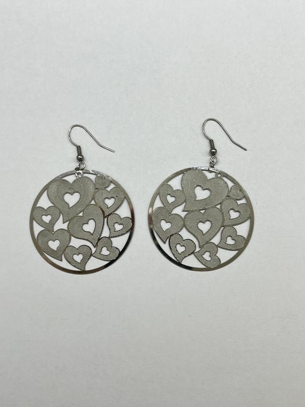 Сережки з сердечками, біжутерія, не темніє, діаметр 4,5см