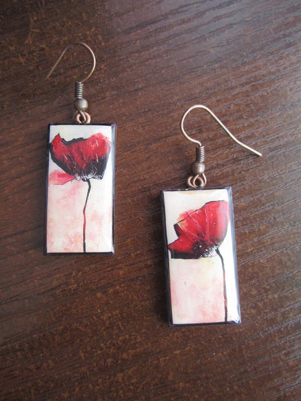 Серьги " маки" ручной работы.