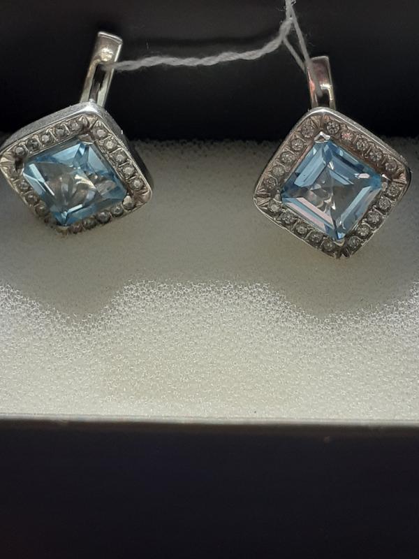Серебряные серьги с голубым топазом и кубическим цирконом