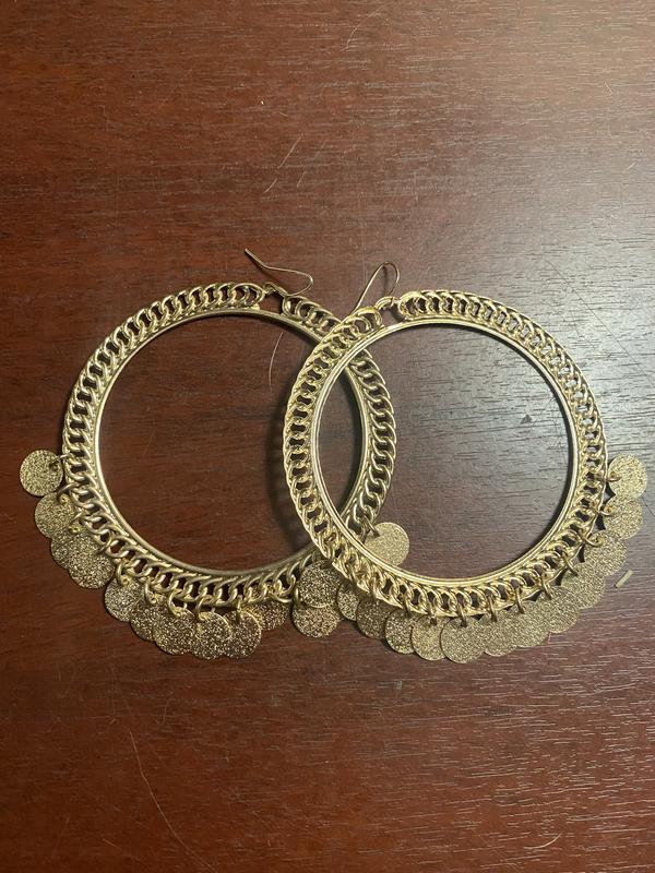 Большие серьги- кольца с монетками. Очень легкие. Размер на фото. Застежка- петля