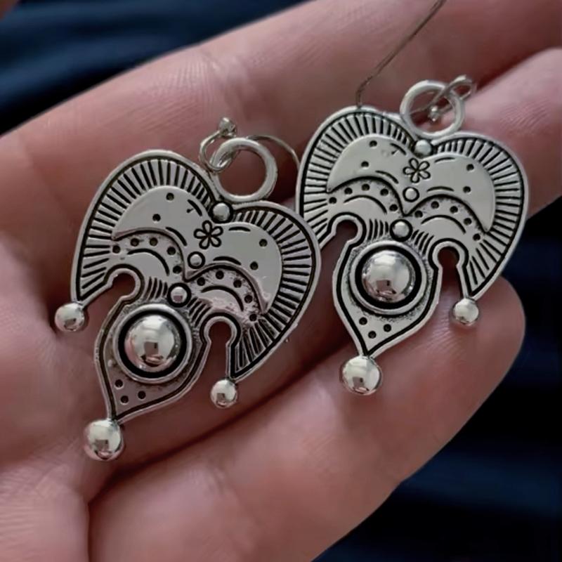 Серьги с этническим узором Изысканные серьги ручной работы в форме сердца, выполненные под серебро. Легкие, удобные в носке и в то же время обладающие выраженным этническим характером. Орнамент с нежным цветочным элементом добавляет изделию аутентичности и шарма. Подойдут как для повседневного образа, так и для особых событий. Особенности: Материал: сплав металлов под серебро Цвет: серебристый Застежка: крючок (английская петля) Вес: легкие Стиль: этно / бохо / винтаж Прекрасный подарок для женщины или девушки